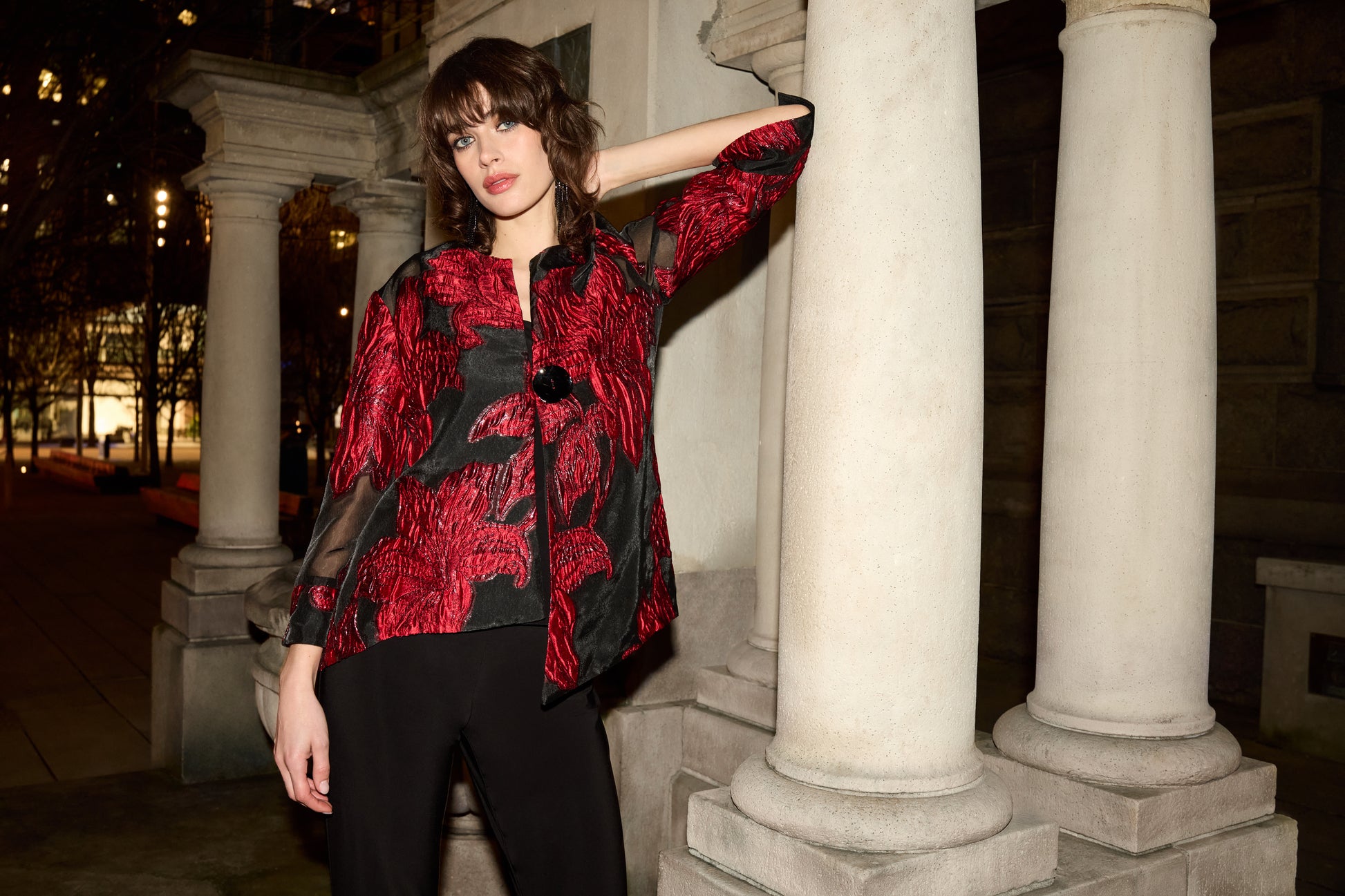 The Frank Lyman Jacket 259157 embodies classic sophistication with its clean lines and expert craftsmanship. Designed to complement your professional and elegant wardrobe, this jacket offers a flattering fit and timeless appeal.